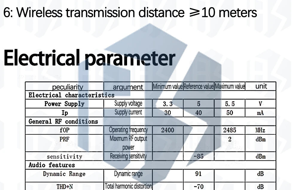 6>. The wireless transmission distance is not less than 10 meters.