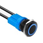 LED Latching Push Button Switch, Aluminum Alloy, IP67 Waterproof 5 19mm 1 Blue