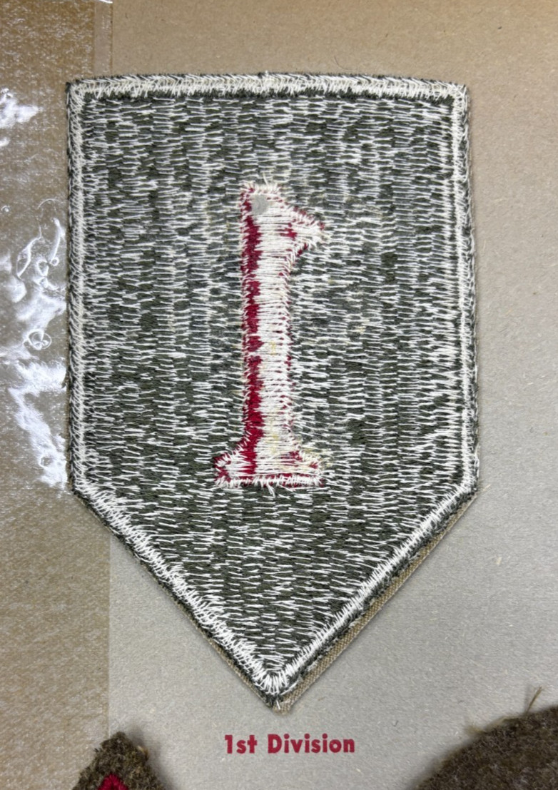 Kay Adams Collection WW 2 US Army 1st Infantry Division Patch Inv# KA120 first two images. Third image is the page the patch actually came from, fourth, fifth and sixth are images of the actual album
