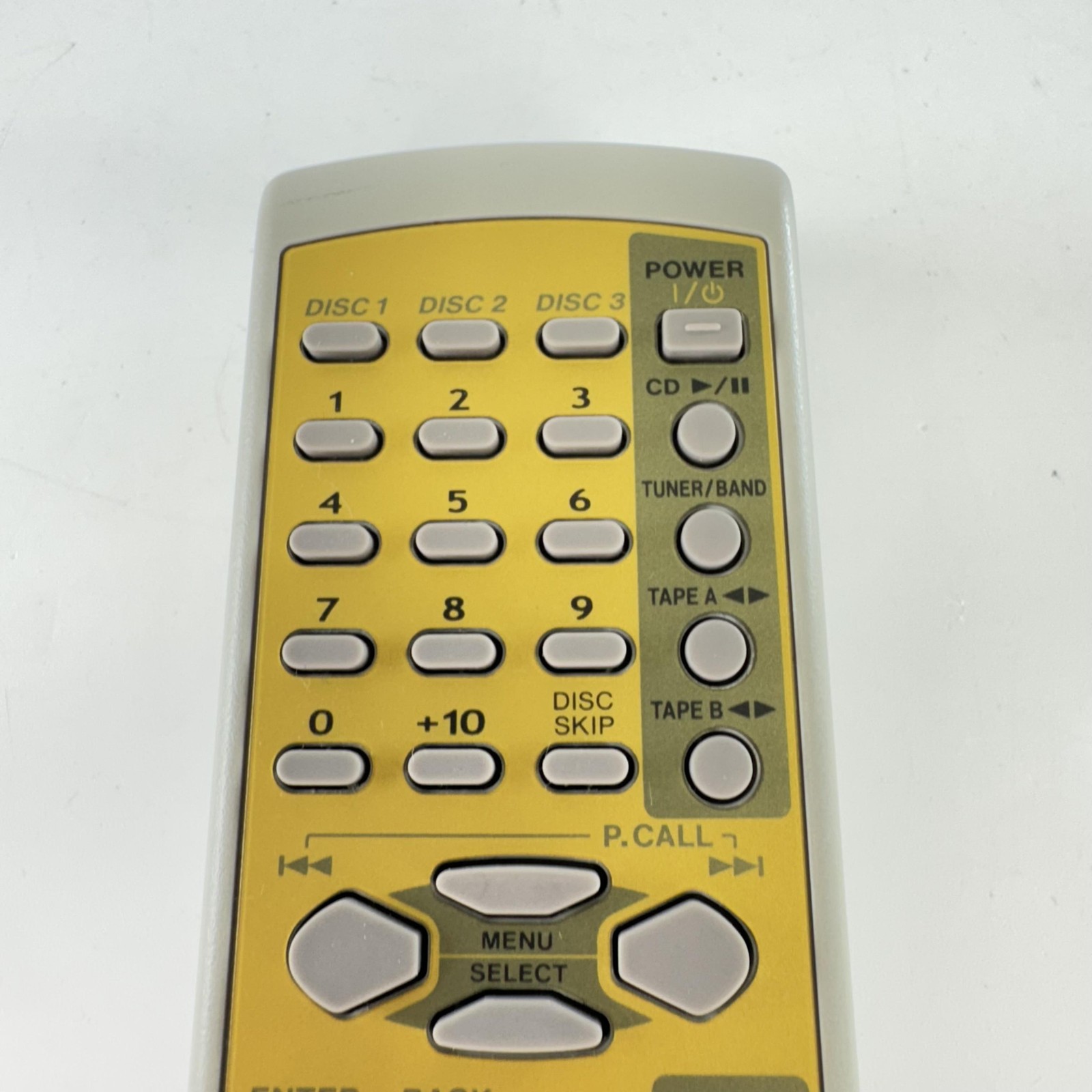 Distinctive yellow and gray button design. All button labels are sharp and clearly legible. Kenwood branding and model number RC-553 appear on the front.
