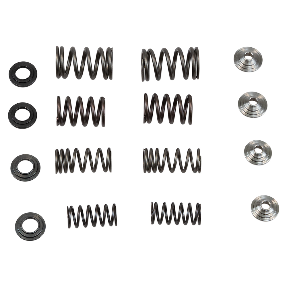 Note: The Exhaust springs for this kit include a progressively wound Inner Spring, which should be installed with the tightly wound end seated on the H.T. Steel Basewashers.