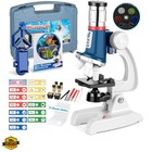 58-Piece Kids Microscope Kit - 100X-1200X Magnification, Metal Body, LED Ligh...