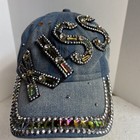 Denim Hat Bling Studded Rhinestones Baseball Cap Hat Adjustable Distressed Jeans