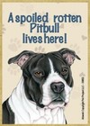 A spoiled rotten Pitbull lives here! BLK WHT Wood Fridge Magnet 2.5x3.5 Gift New