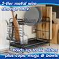 The sleek and sturdy two-tier metal wire construction offers space for up to fourteen dishes at a time, with additional room beneath for extra bowls, cups or mugs.