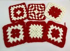 6 Red and White crocheted potholders hot pads pot holders handmade lot 6x6