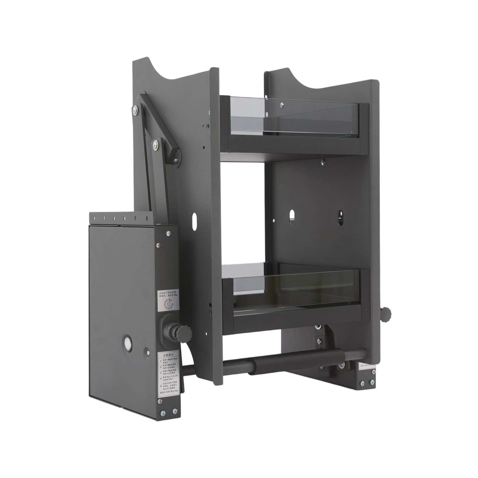 - Please strictly adjust the gear according to the load-bearing range. The gear adjustment process should only be adjusted in the return state. It is strictly prohibited to operate the button when pulling the shelf.
