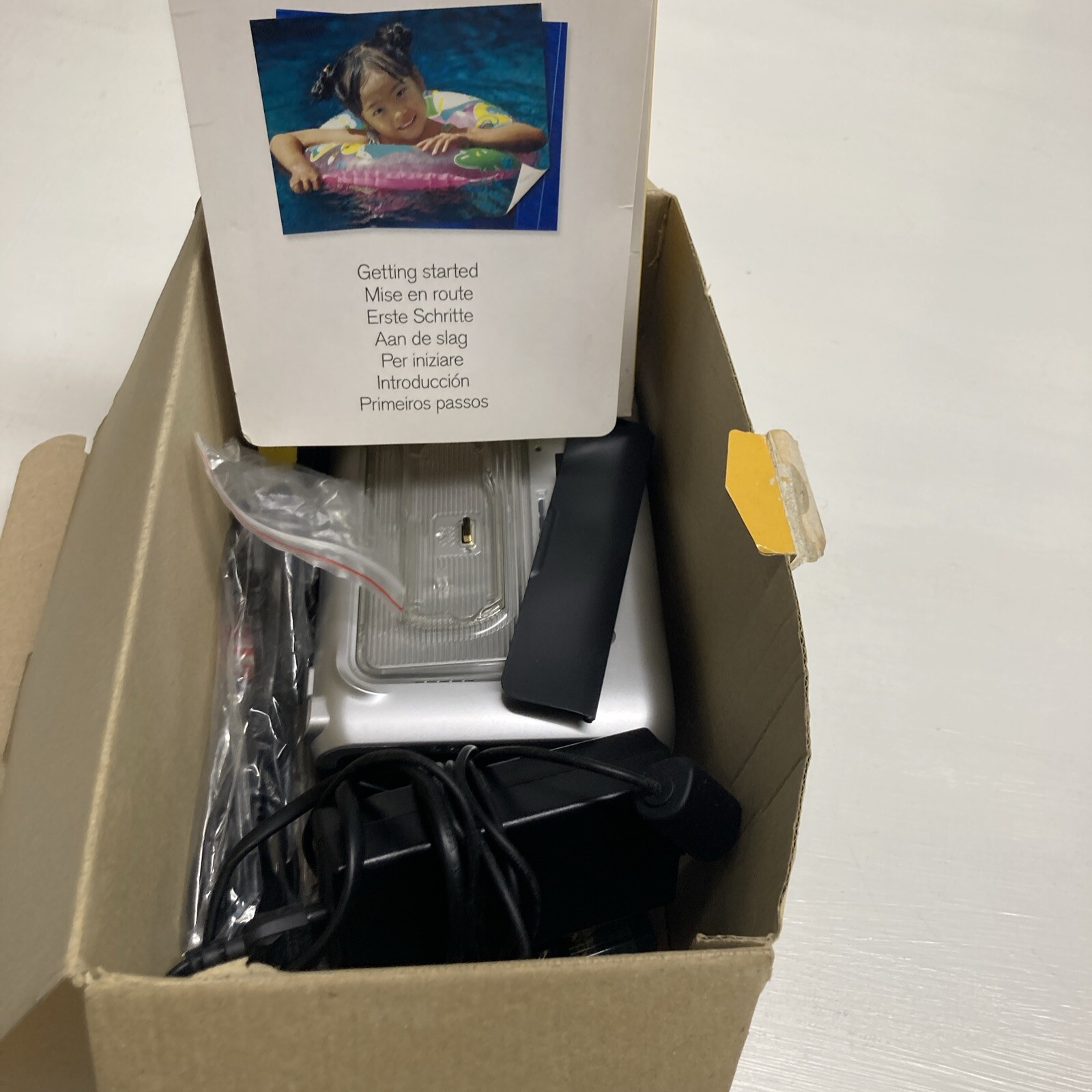 Some photo paper is in the tray but this is old and may not work. The fitted cartridge is also old and may not work.