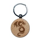Winged Serpent Dragon Engraved Wood Round Keychain Tag Charm