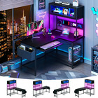 L Shaped Computer Gaming Desk Corner Workstati Table w/ Power Outlet LED Lights