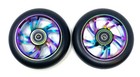 Pair Stunt Scooter Alloy Wheels 100mm and 110mm Rainbow Neo Chrome Core ABEC9