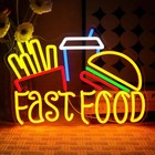 Fast Food Neon Sign Hamburger Neon Light Fries LED Dimmable for Burger Shop Food