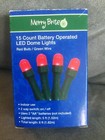CVS MERRY BRIGHT 15 COUNT BATTERY OPERATED DOME LIGHTS RED BULB/GREEN WIRE - NEW