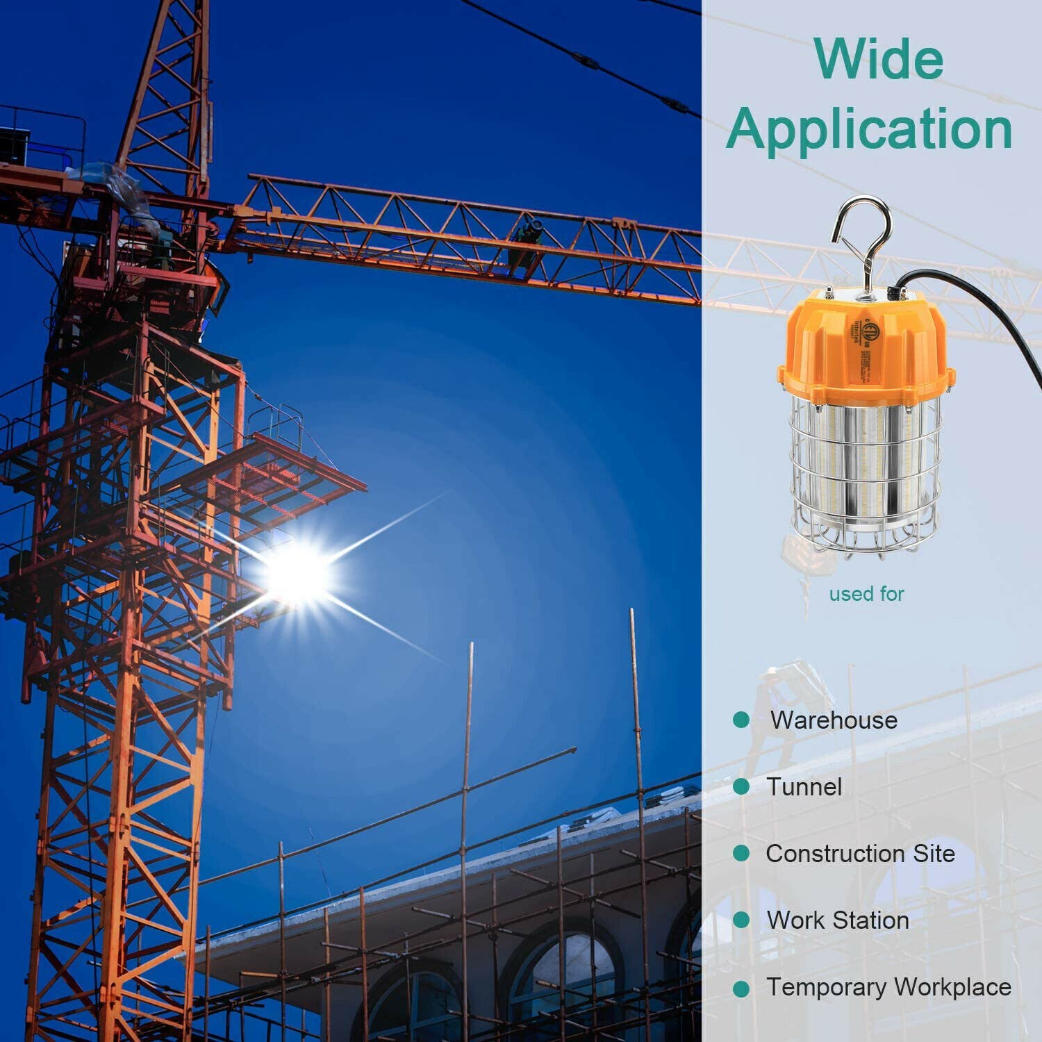Convenient and professional- The portable LED temporary high bay light is designed Industry-graded stainless steel protective cage housing, adds additional durability and protections to the product.