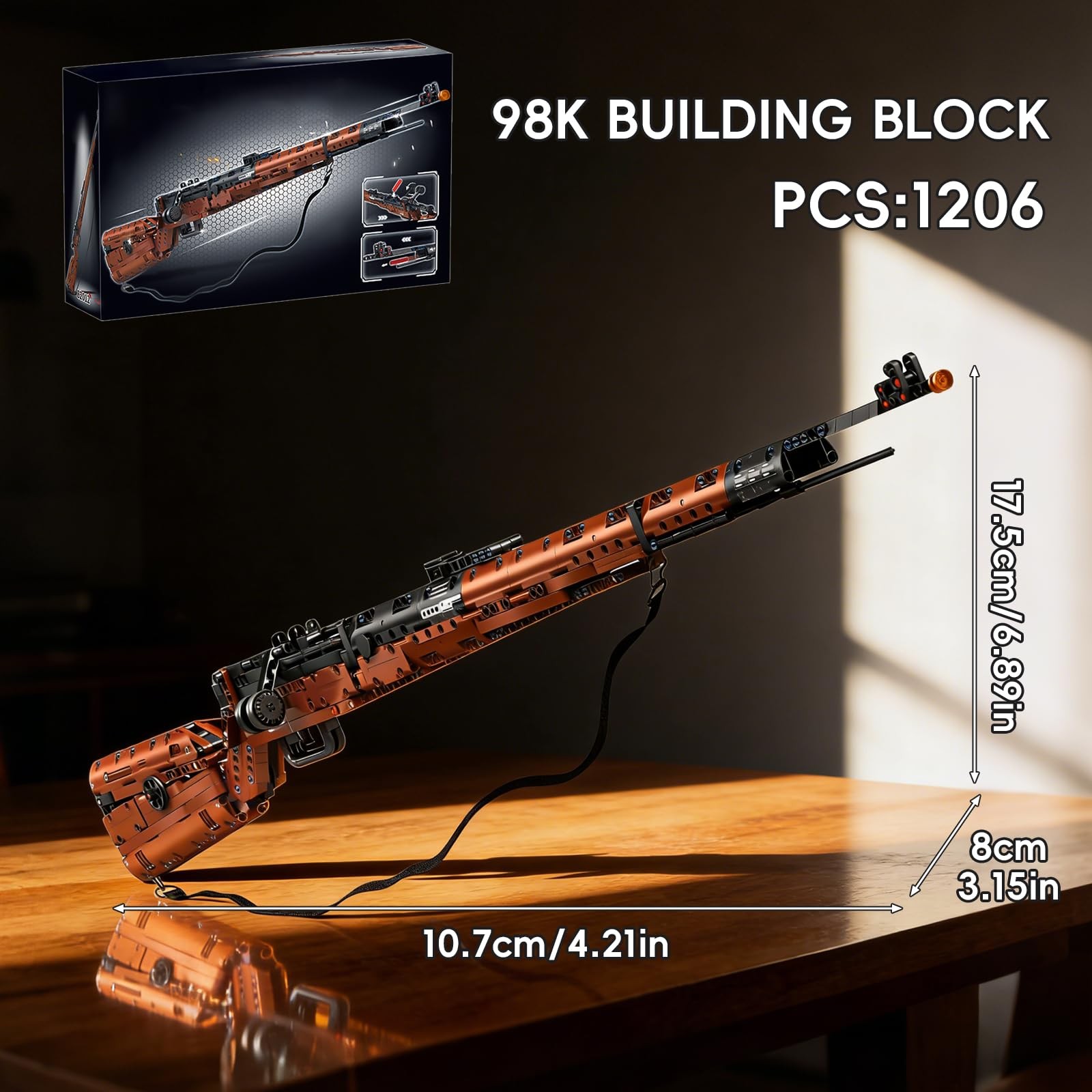 Unique Desktop Display:With its classic wood-grain color scheme and included strap, this assembled model makes a striking decoration for a gaming desk, shelf, or office. It serves as a sophisticated piece of brick art and a conversation starter for history fans