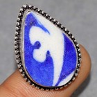 925 Silver Plated Blue Pottery Ring US 8 Christmas Special Jewelry Trendy GW