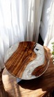 White Round Epoxy Resin Cafeteria Top Coffee Table Acacia Wooden Console Bar Dec