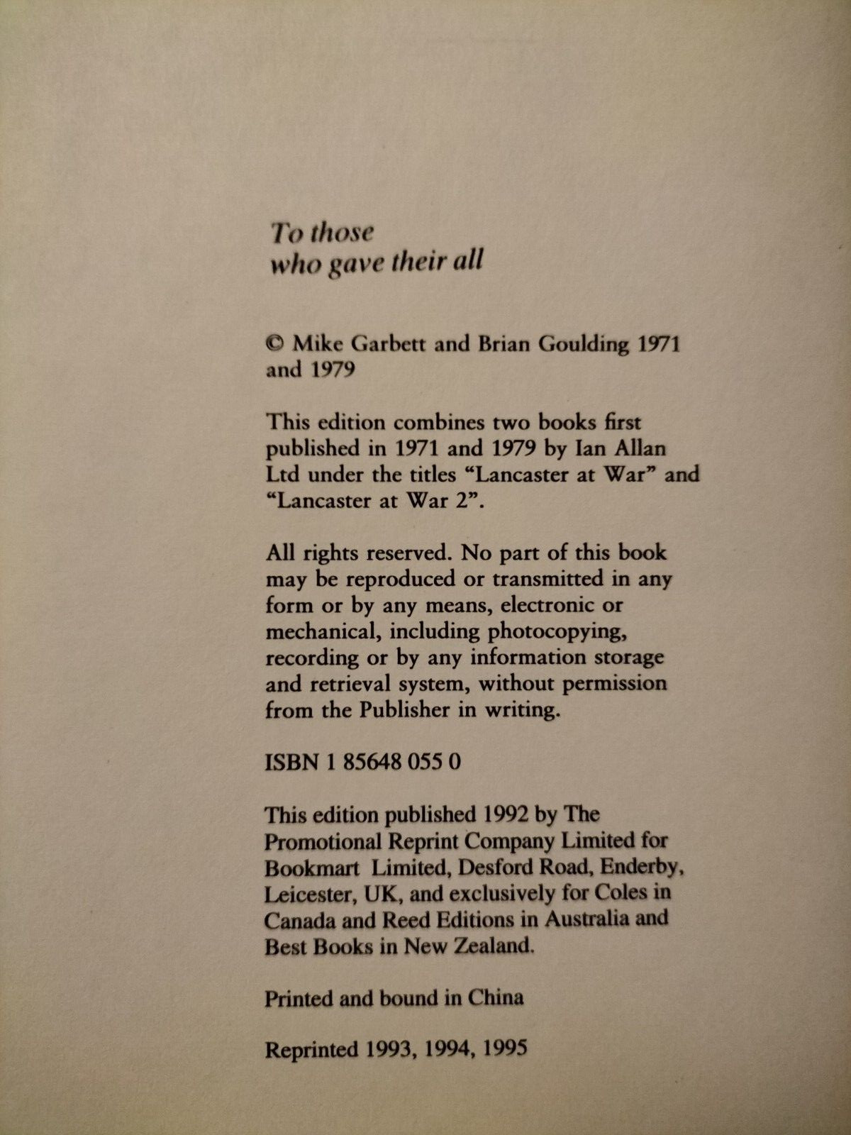 Lancaster M Garbett And B Goulding 1995 Hardback Promotional Reprint
