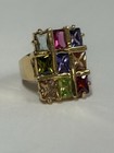 Multi color Gemstones Cocktail Ring, size 6, Gold Tone Blue, Green, Red, Purple