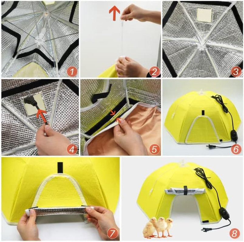 - Ideal Size: Diameter 21.65 inch chicken brooder heating umbrella fits up to 50 newly hatched chicks, ducklings.It can also be used for pets, such as cats, dogs, rabbits, etc.