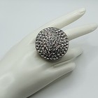 Chunky Silver Tone Black Clear Rhinestone Dome Round Circle Cocktail Ring 6.25