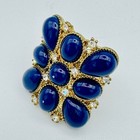 Statement Ring Gold Tone Blue Cabochon Rhinestone Adjustable Band Cocktail Ring