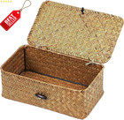 Seagrass Storage Basket with Lid Rectangular Small Woven Shelf Baskets with Sect