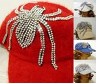 Spider Crystal Studded Rhinestone Bling Angora Soft Fuzzy Baseball Hat Cap Visor