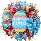 18" Easter Mesh Wreath for Front Door Artificial Flower Wreath with Happy Eas...