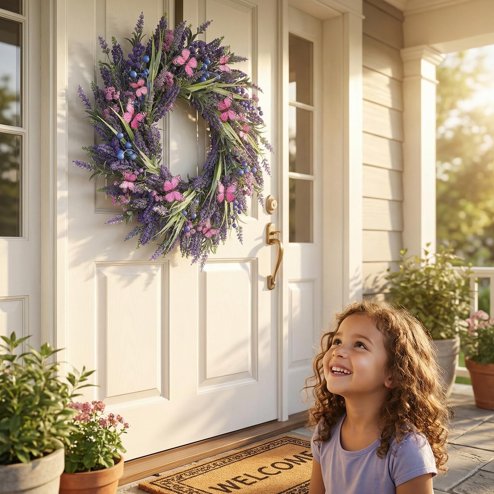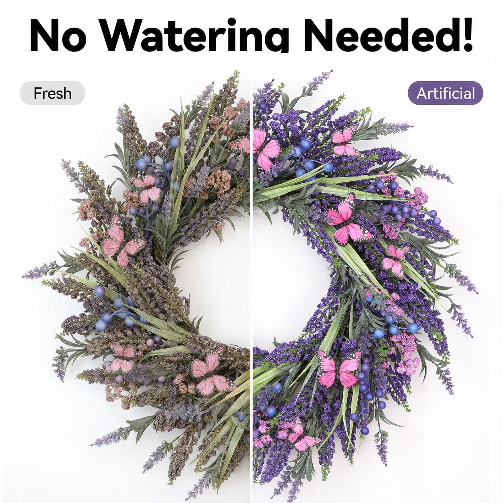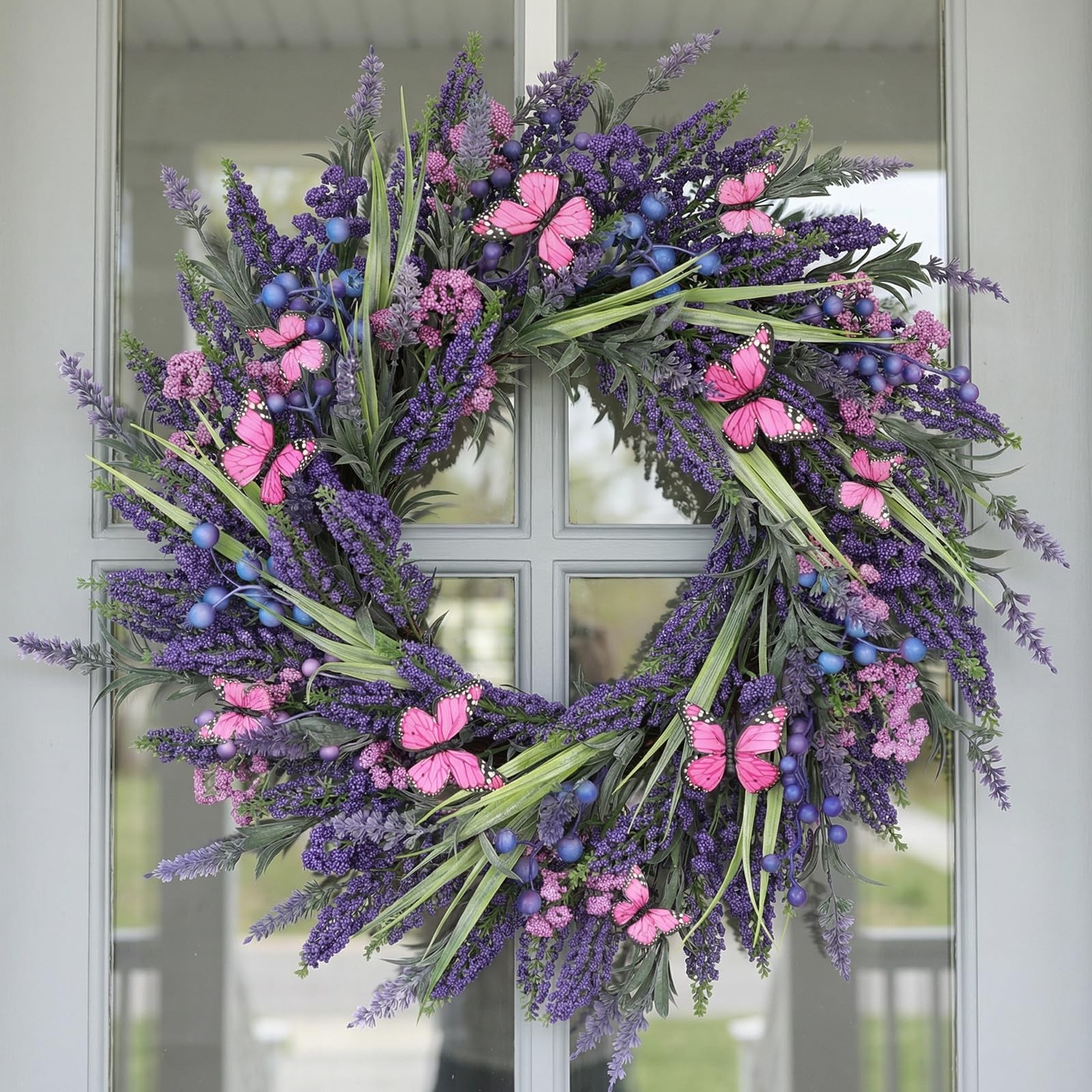 Lavender Wreaths for Front Door 24 Inch Spring Summer Wreath with Lavender,Berries, Butterflies,for Year-Round Use Indoors and Outdoors as Wall, Door, Window, Party and Wedding Decorations