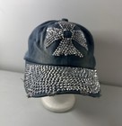 Rhinestone Cross Hat Womens Strapback Distressed Blue Denim Religion Cap Bling