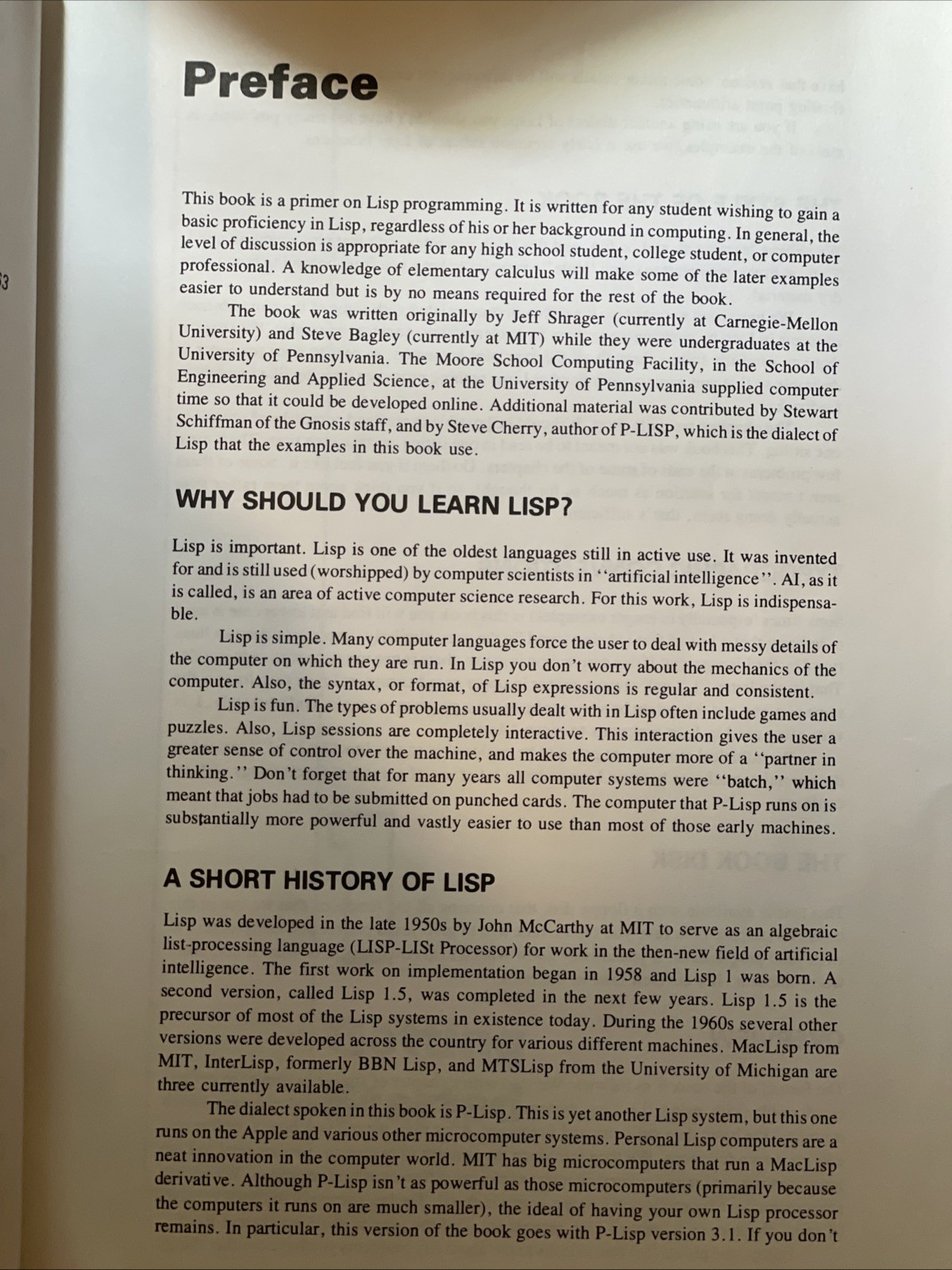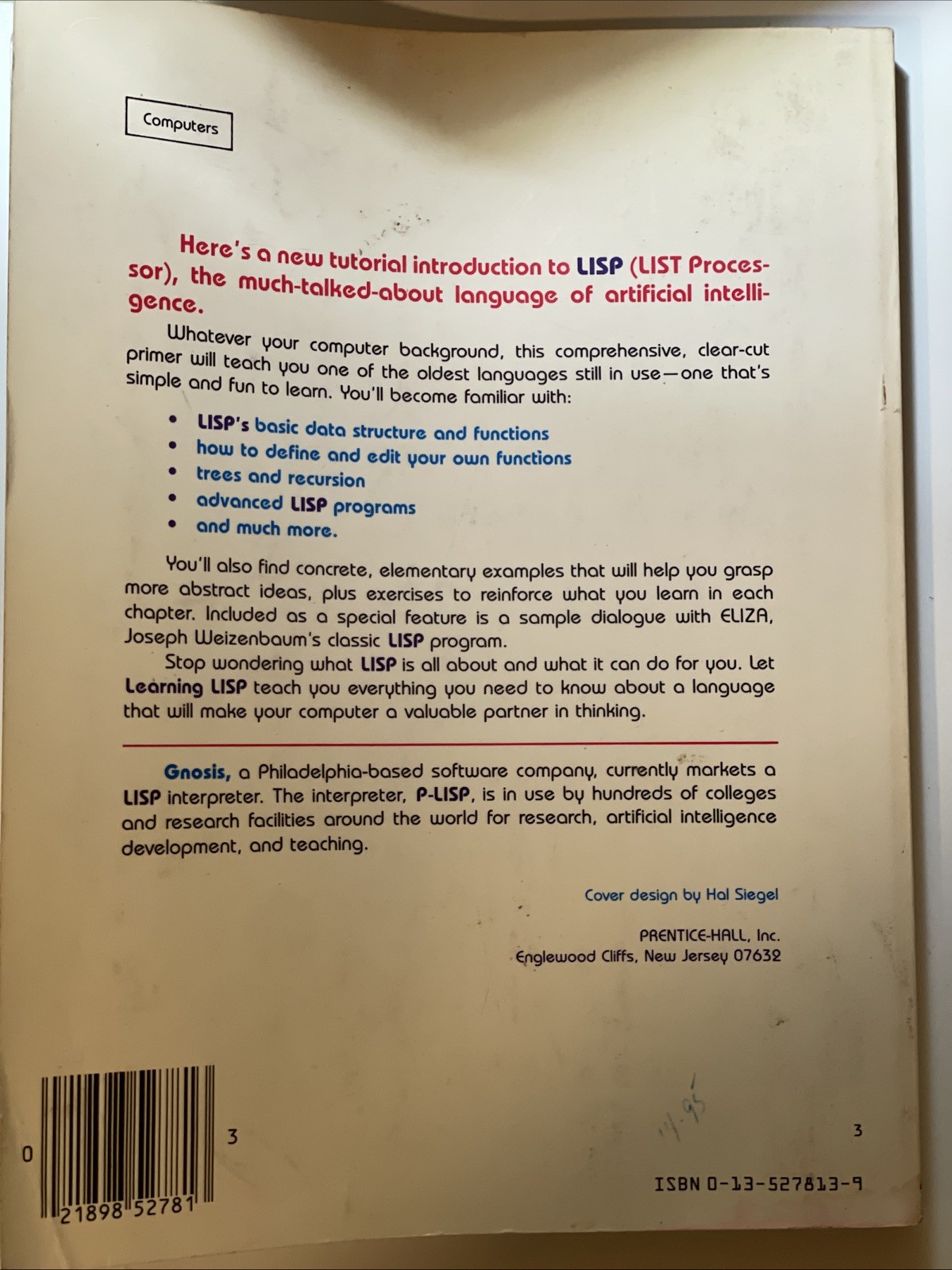 The Learning LISP by GNOSIS is a vintage book aimed at teaching the Lisp programming language. This book is likely a valuable resource for individuals looking to learn about vintage computing and programming techniques from the past. With its vintage nature, it may provide a unique perspective on the history and development of LISP and support the preservation of retro computing knowledge.