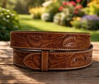 Western Floral Embossed Genuine Cowhide Leather Belt Strap 1-1/2''(38mm) Wide