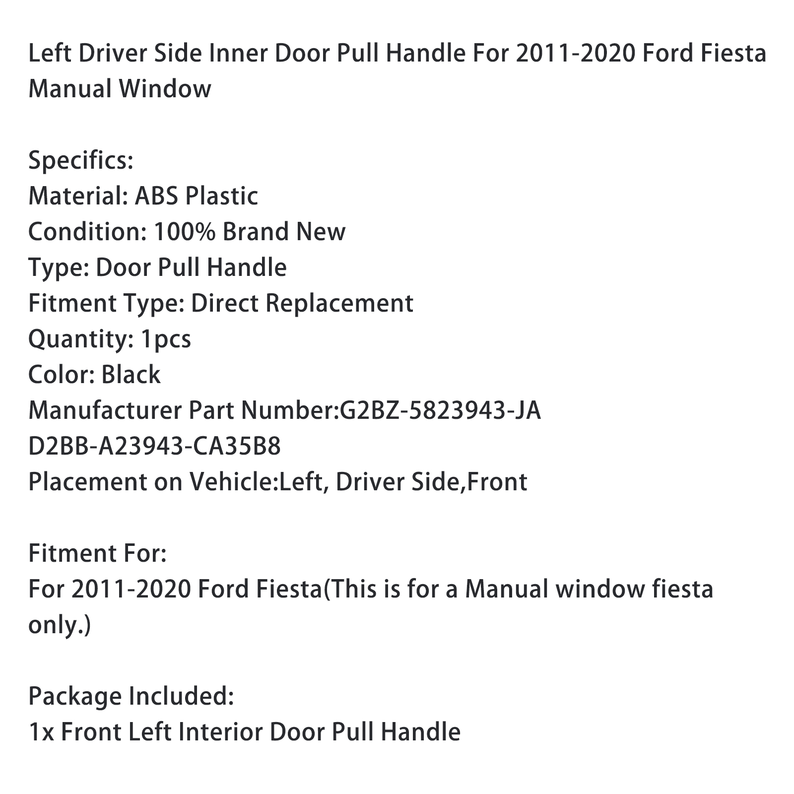 For 2011-2020 Ford Fiesta(This is for a Manual window fiesta only.)
