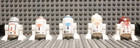 5 Lego Star Wars Astromech Droids. R2-D2, R5-D4, R4-G0, R4-P17 & R5-D4 dome head