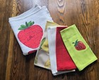 SET of 4 retro KITCHEN dish TOWELS & TABLE RUNNER red STRAWBERRY yellow LEMON