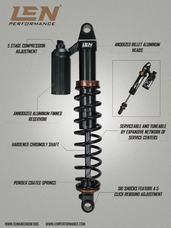 Len Performance was developed in the heart of the American Midwest by riders that are passionate about the powersports industry and the machines they ride. We set off to develop a line of high performance shocks that we could rely on whether we were on the trails in Minnesota or in the backcountry of Wyoming. We knew what we wanted, a rebuildable reservoir shock that is tunable, adjustable but also user friendly.