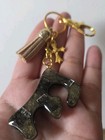 Letter F Keychain Resin With Cross Charm And Tassel Handmade Goldtone