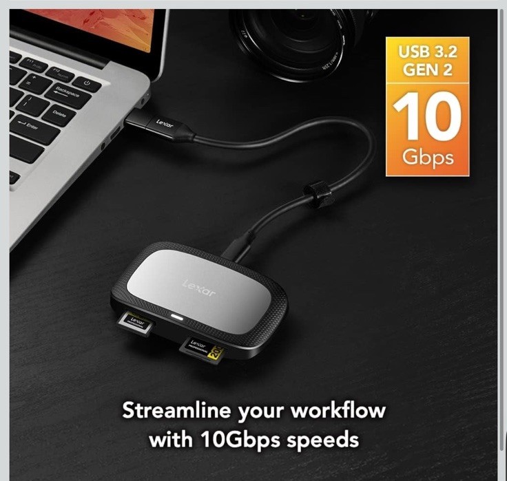 Lexar Professional CFexpress Type A / SD USB 3.2 Gen 2 Reader, Designed for CFexpress Type A and SD UHS-II Cards, High-Speed USB 10Gbps Transfer Speeds (LRW530U-RNBNG)
