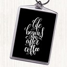 White Black Life Begins After Coffee Quote Bag Tag Keychain Keyring