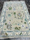 Hand Knotted Oushak Wool Area Rug Soft Green Pastel Floral Turkish Design carpet