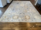 Light Blue Oushak Area Rug 8x10 Handmade Turkish Wool Hand Knotted Vintage