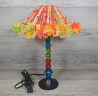 2007 Boho Gumball Table Lamp Multicolor Stacked Bead Base Ribbon Shade 15" Tall