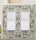 VICTORIAN Antique-WHITE SHADOW LIGHT SWITCH OUTLET DOUBLE ROCKER WALL PLATE GFCI