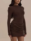 Ruched Mock Neck Long Sleeve Dress