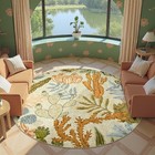 Green Botanical Print Round Rug 8ft Washable Area Rugs Indoor Circle Modern T...