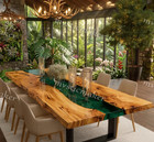 Ocean Green Resin River Dining Table Handmade Live Edge Epoxy Wood Furniture Dec