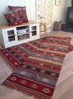 Living Room Rug Wool Cotton Kilim Red Geometric Design Large Small Runner Rugs