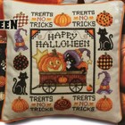 HAPPY HALLOWEEN PILLOW PUMPKINS CATS CROSS STITCH PATTERN