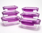 LocknLock 6-Pc Glass Rectangle Bakers,Vented Lids,Food Storage, VIOLET, K97527